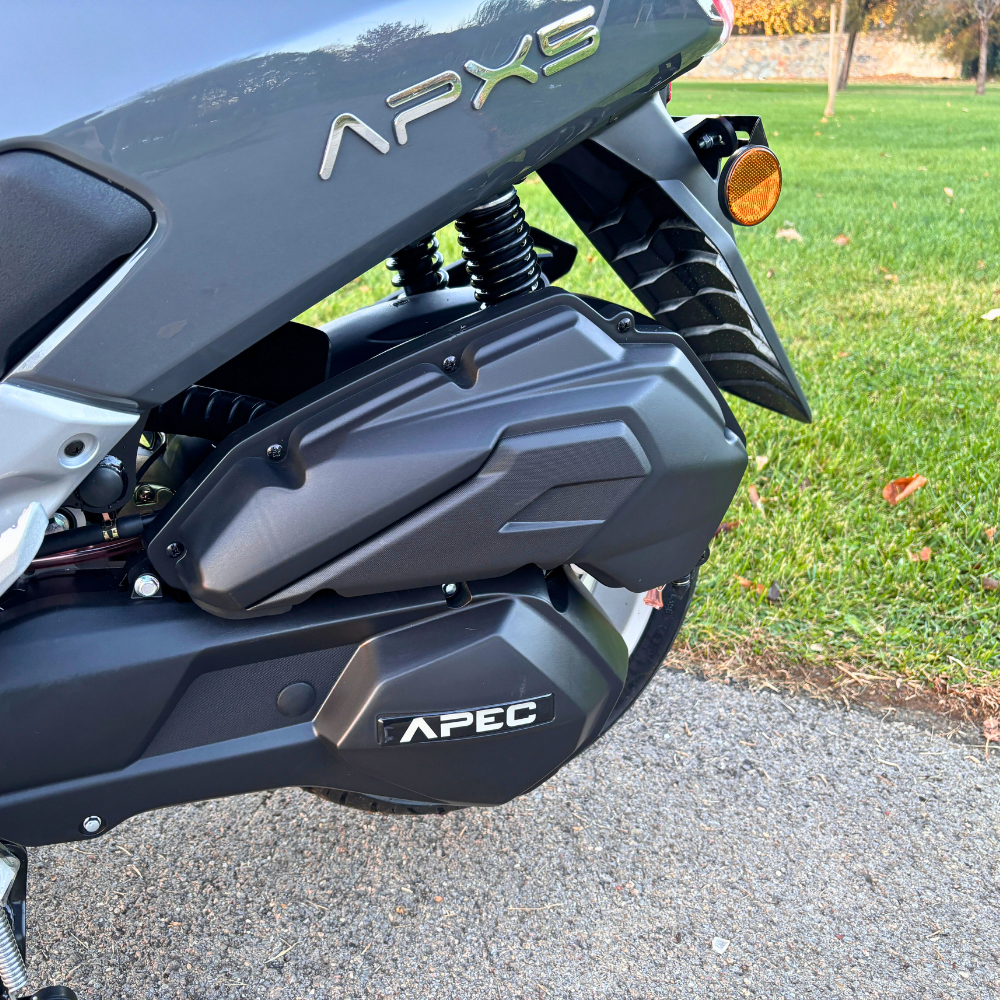APEC APX5 Benzinli Motosiklet, maxi scooter kategorisinde güçlü motoru, gelişmiş güvenlik özellikleri ve modern tasarımıyla dikkat çeker. Şehir içi ulaşımda özgürlüğü yeniden tanımlayan APEC APX5, her anınıza konfor, güvenlik ve performans katmak için yanınızda. Günlük yaşamınızda fark yaratmak için APEC APX5’i tercih edin!
