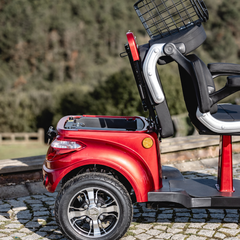 Çift oturma düzenine sahip VM4+, iki yolcu için geniş ve rahat bir yolculuk imkanı sunar. Koltuk altı saklama alanı ve 10 kg kapasiteli arka sepet, kişisel eşyalarınızı veya hafif yüklerinizi güvenle taşımanızı sağlar. Kompakt tasarımı, dar alanlarda manevra yapmayı kolaylaştırır ve şehir içi kullanım için mükemmel bir seçenek sunar.