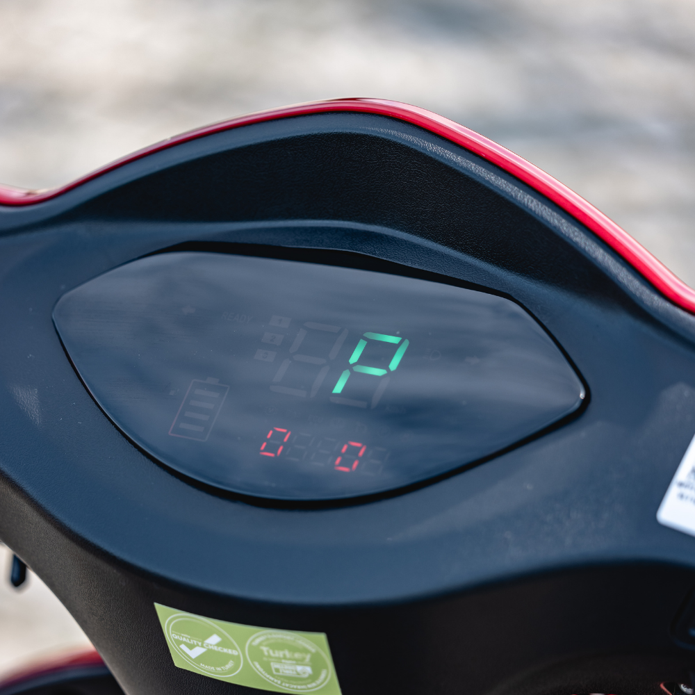 Dijital gösterge, hız ve batarya durumu gibi kritik bilgileri sürücüye anında ileterek kontrolü artırır. Geri sürüş modu, park ve dar alanlarda kolaylık sağlar. Kolay kilitlemeli el freni ve diferansiyel sistemi, güvenli bir sürüş deneyimi sunar. Üç farklı güç seviyesi seçeneği ile kullanıcı ihtiyaçlarına göre özelleştirilebilir bir sürüş imkanı sağlar.