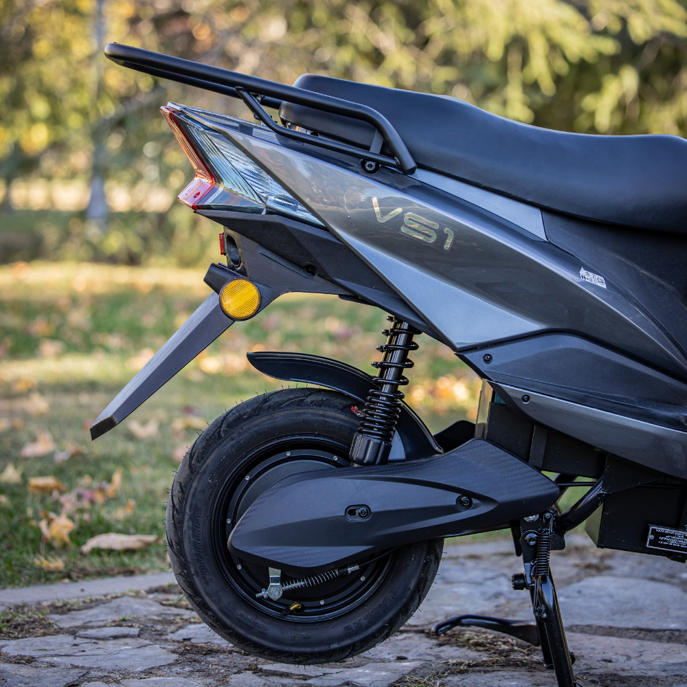 Volta VS1, 180 mm ön hidrolik disk fren ve arka kampana fren sistemi ile her koşulda güvenli frenleme sağlar. Yoğun trafik ve ani duruşlarda güvenliği en üst seviyeye çıkaran bu sistem, sürücüye tam kontrol sağlar. Çift şok emici arka süspansiyon ve 50 mm stroklu ön teleskopik süspansiyon, zorlu yol koşullarında bile sarsıntısız bir sürüş sunar.