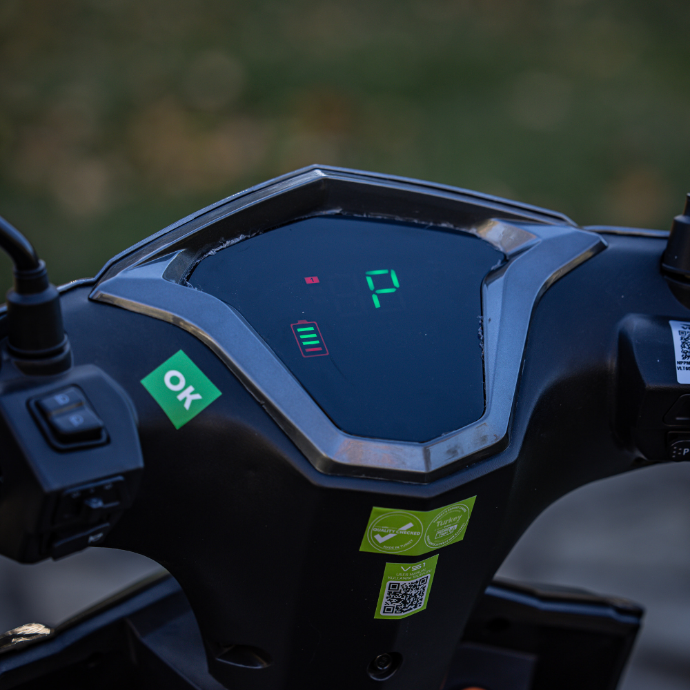 Volta VS1, 2000W motor gücüyle şehir içi ulaşımda güçlü ve verimli bir performans sunar. 72V 20Ah VRLA Jel batarya sayesinde tek şarjla 58 km’ye kadar menzil sağlar. Dik yokuşlarda dahi güvenilir bir sürüş deneyimi sunarak şehir içi ve çevresindeki günlük yolculuklarınızı kolaylaştırır.